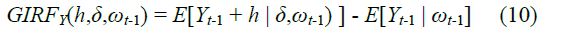 The GIRF in the case of an arbitrary current shock (δ) and history (ωt-1) [1] [6] is specified below: