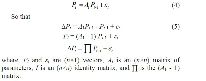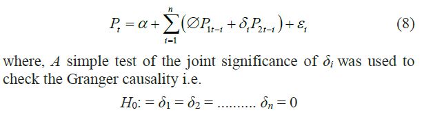 where, Pit is the price in market i at time t, α and ΔPit(Pit - Pt-1) is the intercept or trend term.