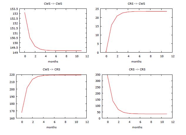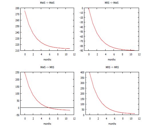 Depicted graphically in Fig.3, Fig.4, Fig.5, Fig.6, Fig.7 and Fig.8 are how and to what extent innovation be it good-news or bad-news local to the prices of one of the banana markets affects the current and as well as the future prices in all the integrated markets over a period of twelve months. The Fig.3 for the wholesale in multivariate horizontal dimension showed that a shock local to CWM will have a permanent effect on AWM and transitory effects on itself and the remaining wholesale markets. An orthogonalized shock originating from AWM will not die-off in markets CWM, MWM and HWM; but will die-off in its own market within a short period of time. In addition, results showed that invention of bad-news in both MWM and HWM will have a lasting effect on only AWM market and transitory effects on the remaining markets inclusive its own market. Therefore, it can be inferred that with the exception of AWM all the remaining wholesale markets are relatively price followers and do not play role in the national banana market of the country as the extent of shock from these markets on other markets are less. The Fig.4 of the multivariate retail market horizontal-wise dimension depicted ARM and MRM to be the major price determinants in the retail market as shocks emanating from these markets are to a large extent transmitted to all the selected banana retail market in India. In addition, it showed that these aforementioned retail markets are the major game changer in the price of banana among the selected retail markets in India. In the case of the vertical-wise impulse response, unlike wholesale and retail markets in Chennai and Hyderabad whose shocks are transmitted to each other, the wholesale market in Ahmadabad is a price follower while both markets in Mumbai are independent of each other in terms of price shocks emanating from each channel in the marketing of banana (Fig.5 to Fig.8).