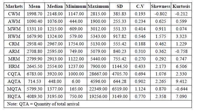 3.1 SUMMARY STATISTICS OF MARKET PRICES AND QUANTITY OF ARRIVALS OF BANANA